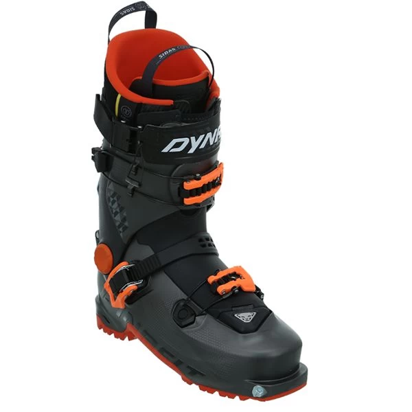Der Hoji Free ist im Gegensatz zum Hoji Pro Tour dank seiner Auflage vorne und der veränderten Ferse auch mit alpinen Skibindungen kompatibel. Mit seiner erhöhten Steifigkeit dank eines neuartigen Grilamid-Materials mit Glasfasern und dem progressiven Flex von 130 bringt der Hoji Free alle Eigenschaften mit, um beste Kraftübertragung und eine top Downhill-Performance auf den Ski zu bringen. Der Fuß ist mit einer Leistenbreite von 102 mm, den drei feinjustierbaren Schnallen und dem Ultra Lock Strap perfekt eingefasst. Im Abfahrtsmodus kann der Hoji Free mit einem Neigungswinkel von 11 Grad oder 17 Grad blockiert werden und bietet somit eine angenehme, aber gleichzeitig sportliche und kontrollierte Position auf dem Ski – sei es beim Pressen, Carven oder Slashen. Aber auch den Aufstieg müssen Freetourer mit dem Hoji Free nicht scheuen: Die V-Shape Zunge und die Schaftrotation von 55 Grad sorgen für maximale Bewegungsfreiheit, Flexibilität und Komfort. Somit wird eine natürliche und kraftsparende Gehbewegung auch in sehr steilem Gelände ermöglicht. Dank des geringen Gewichts des Hoji Free von 1550 Gramm ist auch der ein oder andere Höhenmeter mehr kein Problem und es bleibt noch genügend Kraft, um die wohlverdiente Abfahrt zu genießen. Eine weitere Besonderheit des Hoji Free ist der neue thermoverformbare Hoji Free Liner von Einlage-, Fuß- und Bootfitting-Spezialist Sidas, der in der kommenden Saison exklusiv im DYNAFIT Hoji Free zum Einsatz kommt. Der Liner kann perfekt an die individuelle Fußform angepasst werden und bietet bestmögliche Performance – sowohl bergauf als auch insbesondere bergab. Er überzeugt durch Leichtgewichtigkeit und Komfort, fasst den Fuß dabei aber gleichzeitig präzise, fest und sicher ein. Dank dieser Eigenschaften ist der Liner die erste Wahl für den Hoji Free und unterstreicht das Alleinstellungsmerkmal des Freetouring-Schuhs auf dem Markt. Damit Tourengeher auch über Felsen und vereiste Flanken zum Einstieg in die perfekte Line gelangen, ist der Hoji Free mit der neuen POMOCA Free Sole ausgestattet, die durch Grip und optimale Haftung beim Gehen außerhalb der Bindung überzeugt und gleichzeitig besonders stabil und langlebig ist. Darüber hinaus ist der Skitourenschuh durch die Auflage vorne auch mit vollautomatischen Steigeisen kompatibel. Last but not least ist der Hoji Free für einen leichten Einstieg in die rahmenlose Tech-Bindung auch in unwegsamem Gelände mit dem bewährten Quick Step-In Insert ausgestattet. Produziert wird der Hoji Free, wie auch die anderen Modelle der Hoji-Familie, komplett in Italien. Ski hard & walk easy – one move to switch.