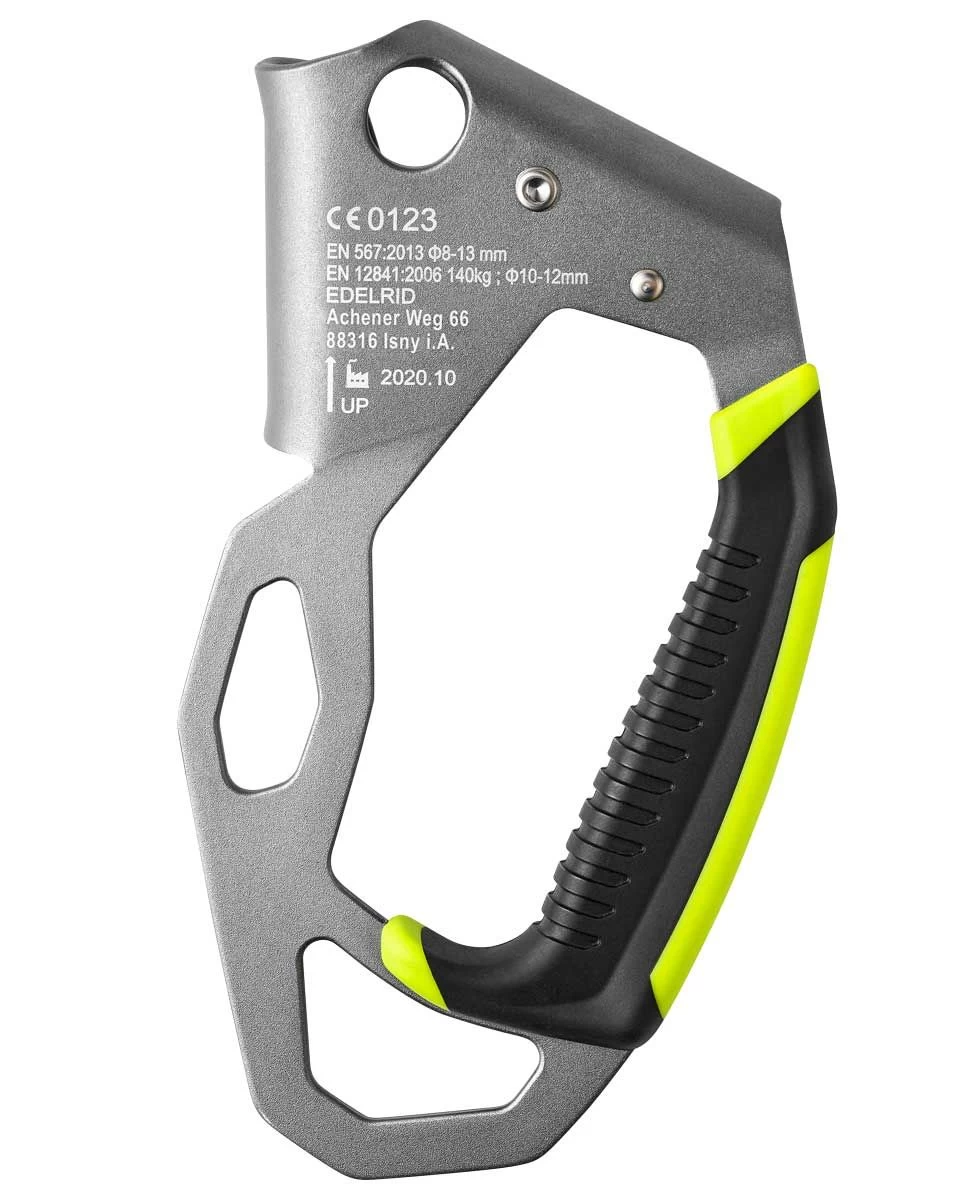 Ergonomisch geformte Handsteigklemme für einen komfortablen Aufstieg am Seil. Die geschwungene Formgebung erhöht den Komfort und reduziert die Reibung im System. Eine große Öse ermöglicht das Einhängen mehrerer Karabiner, eine kleinere Öse etwas höher ist ideal, um eine Umlenkung einzurichten. Beim Aufstieg kann die sekundäre Hand zudem ebenfalls bequem den HAND CRUISER oben umgreifen.