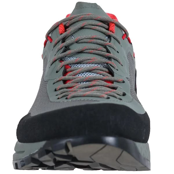 TX Guide ist der technischste Schuh der Linie TX Series La Sportiva. Entwickelt wurde dieser Schuh für technische Zustiege und Bergsteigen für Bergführer und all jene, die am Berg beschäftigt sind und ein leistungsfähiges und langlebiges Schuhwerk suchen. TX Guide ist vielseitig, leicht, bietet Schutz und eignet sich perfekt für walk-run & climb. Das sieht man auch am Look, der an der Kombination zwischen running/approach und der technischen Lösung aus der Climbing-Welt (Sohle, Rand und Schnürung) orientiert ist. Die neue Tech Fit Passform, schlicht und eng anliegend, sorgt für maximale Leistungen. Die sehr stabile Spitze ermöglicht während des Bergsteigens optimalen Halt an Kanten. Der hoch abriebfeste Mesh-Schaft besteht aus einer Lage zur Optimierung des Innenvolumens und verfügt über Mikrofaser-Schutzverstärkungen innen und TPU-Verstärkungen außen, um die Abriebfestigkeit zu gewährleisten. Die Schnürung ist asymmetrisch und approach-style bis zur Spitze für maximale Passformgenauigkeit, während die Hinterseite an den Mythos-Style-Look erinnert und ein perfektes Verschließen an der Ferse ermöglicht. Der climbing-inspired Schutzrand ist aus leichtem PU-TECH Lite Material.Die Zungenkonstruktion wurde von den Runningschuhen inspiriert: die Balgkonstruktion vermeidet das Eindringen von Gegenständen. Die Kombination Sohle/Zwischensohle wurde mit doppelt verdichteter komprimierter EVA hergestellt, für Dämpfung auf der Ferse und Stabilisierung auf dem Mittelfuß:. Die vordere Seite der Zwischensohle ist mit einer, mit Zweikomponenten-Spritzgieß-Technik erstellten TPU-Schicht ausgestattet, die gleichzeitig als Zwischenschicht dient sowie mit Climbing-Zone und also Rock-Guard-Schicht des Vorderfußes dientDie Sohle mit doppelter Vibram MegaGrip und Idrogrip – Mischung ist die perfekte Kombination zwischen Halt und Langlebigkeit. Die breite Ferse unterstützt das Bremsen beim Downhill und sorgt für mehr Halt beim Uphill. TX Guide: be your guide.