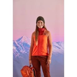 Warmer Midlayer aus schnell trocknendem, atmungsaktivem Material, zwei Zip-Taschen seitlich. Happy Mountain-Patch auf der Brust, runder Maloja-Schriftzug an der Rückseite vom linken Oberarm.