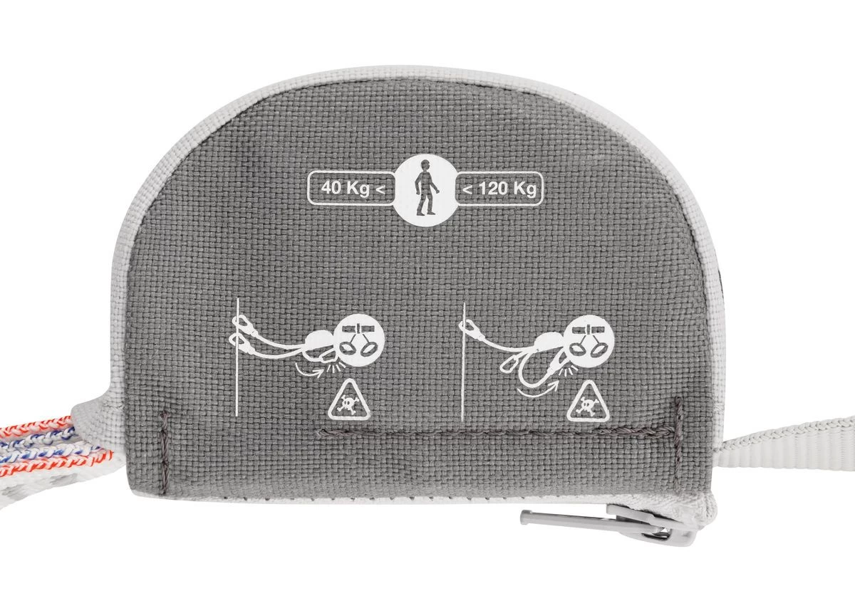 – von Petzl patentiertes ultrakompaktes Dämpfungssystem (Bandfalldämpfer),